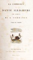 Prima edita a Venezia, co' tipi del Gondoliere nel 1837, poi a Napoli da Cioffi nel 1837, a Milano da Rejna nel 1857 e da Pagnoni nel 1865-68 e nel 1869. Anche qui numerose riedizioni fino a quella UTET del 1944 e all'ultima edita da Salerno nel 2004, dal costo purtroppo proibitivo di 255 Euro. Un commento fondamentale alla Commedia, dello spessore e della ricchezza cui il Tommaseo ci ha abituato nelle sue opere di linguistica. Il Tommaseo si occupò di Dante praticamente per tutta la vita, a partire dalle prime prove in collegio fino alla sua morte. Per l'ultima voce del Dizionario da lui curata (il "Si") ripassò tutta la Commedia (che naturalmente conosceva a memoria) riportando su oltre novecento fogliettini tutte le occorrenze della particella: questa schedatura costituì la struttura della voce, che si estende su oltre 20 colonne. Data la sua familiarità con la Commedia, anche nel suo discorrere quotidiano affioravano citazioni e riecheggiamenti danteschi, cosa che non mancò di essere spunto di sarcasmi e ironie.